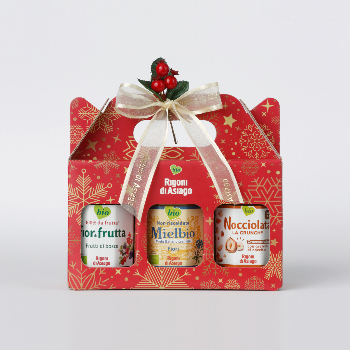 1- Miele fiori di campo cremoso da 300g2- Fiordifrutta Frutti di Bosco da 250g3- Nocciolata Crunchy da 250g